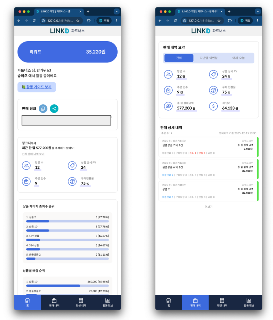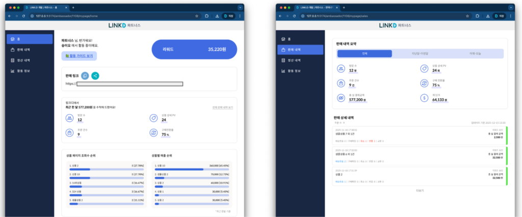 박 : 링크디 파트너스 마이페이지를 디자인했다. 링크디 서비스 상세페이지도 디자인 하고 있고, 초기에는 서비스 배너 디자인도 좀 했다. 빠꾸를 먹긴 했지만…
