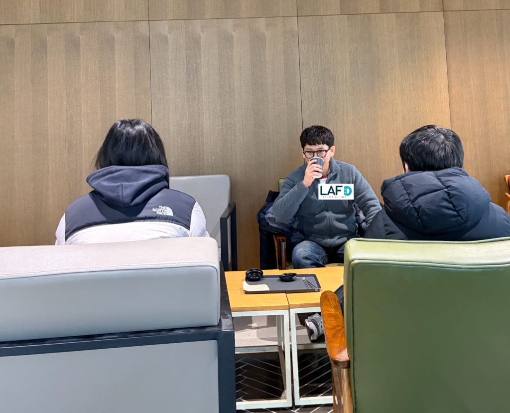 손 : 아까 이야기 했듯 자유도가 낮고 경직되지 않을까 했는데, 라프디는 좀 더 프리토킹도 가능하고. 비치된 음료수나 과자도 언제든 먹을 수 있고. 눈치도 안 주고 너무 좋았다. 그리고 밥도 내가 사먹어야 하는 줄 알았는데, 식권을 줘서 그것도 좋았다.